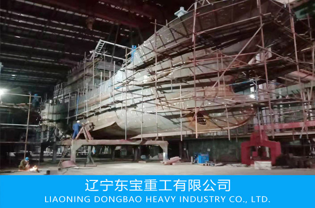 近日,由遼寧東寶重工有限公司承制的38.38米漁船順利下胎,2018-2019年東寶重工先后制造數(shù)十艘不同噸位漁船,制造能力達每年6-8萬噸。 Recently, the 38.38-meter fishing boat contracted by Liaoning Dongbao Heavy Industry Co., Ltd. successfully laid the tires. In 2018-2019, Dongbao Heavy Industries has successively manufactured dozens of different-tonnage fishing vessels with a manufacturing capacity of 60,000-80,000 tons per year. 遼寧東寶重工有限公司位于葫蘆島市北港經(jīng)濟開發(fā)區(qū),占地面積85000平方米,總建筑面積56651平方米,年生產(chǎn)能力66000噸,是一家集船體分段制作、船舶管件制作安裝、艙口蓋制作及鋼結(jié)構(gòu)工程制作的專業(yè)化公司,是渤船重工重要的船舶配套企業(yè)之一。在船舶船體分段、上層建筑、管件、和其他輔助機件制造安裝方面,具有豐富的經(jīng)驗和雄厚的技術(shù)力量。擁有2000平方米鋼料堆場一座,小組力建造廠房兩座,中大組力建造廠房3座。擁有150噸起重機2臺,100噸起重機3臺。20噸起重機10臺等大型設(shè)備,最大起重能力300噸,年生產(chǎn)能力8萬噸。 Liaoning Dongbao Heavy Industry Co., Ltd. is located in the Beigang Economic Development Zone of Huludao City. It covers an area of 85,000 square meters, with a total construction area of 56,651 square meters and an annual production capacity of 66,000 tons. It is a hull segment production, ship fittings installation and hatch. The specialized company of cap making and steel structure engineering is one of the important ship supporting enterprises of Barge Heavy Industry. It has rich experience and strong technical force in the manufacture and installation of ship hull sections, superstructures, pipe fittings and other auxiliary parts. It has a steel storage yard of 2,000 square meters, the group has built two workshops, and the Zhongda Group has built three workshops. It has 2 sets of 150 tons of cranes and 3 sets of 100 tons of cranes. 10 sets of 20 tons of cranes and other large equipment, the maximum lifting capacity of 300 tons, the annual production capacity of 80,000 tons.