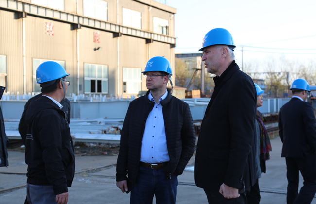 我公司董事長李寶東先生和王靜夜總經(jīng)理對考察團(tuán)的到來表示熱烈歡迎,并陪同考察團(tuán)到各公司進(jìn)行了實地的考察。李董事長向來賓介紹了我公司的基本情況和我公司不同行業(yè)發(fā)展現(xiàn)狀,外賓對我公司的船體分段制造、鋼結(jié)構(gòu)構(gòu)件成品、集裝箱房及船用裝飾材料各單元產(chǎn)品表示極大的興趣。并對我公司立足長遠(yuǎn)發(fā)展,實現(xiàn)企業(yè)效益和社會效益雙贏的戰(zhàn)略給予了高度肯定。 Mr. Li Baodong, the chairman of our company, and Mr. Wang Jingye, the general manager of the company, expressed their warm welcome to the delegation and accompanied the delegation to the companies for a field visit. Chairman Li introduced the basic situation of our company and the development status of different industries of our company. The foreign guests expressed great greatness to the hull segment manufacturing, steel structural component finished products, container house and marine decorative materials. interest. It also highly affirmed the strategy of our company based on long-term development and achieving a win-win situation for both corporate and social benefits.