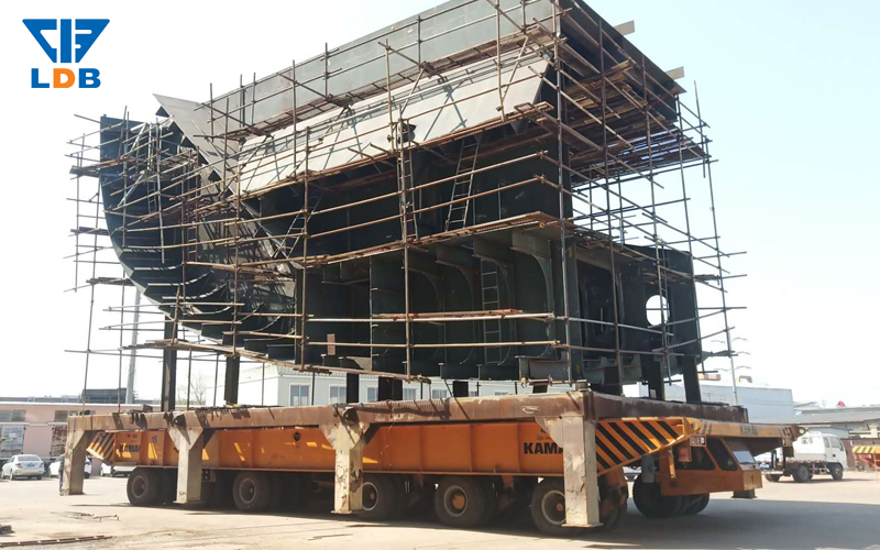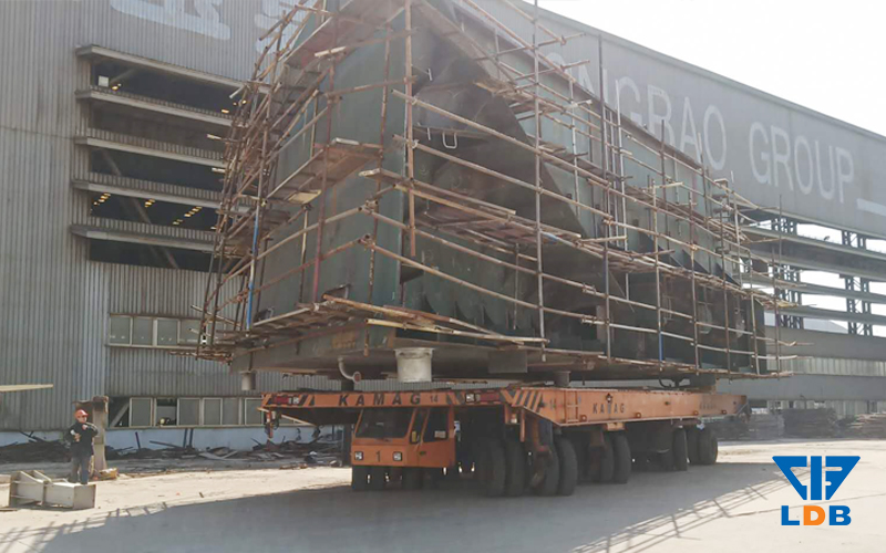 In April 2020, liaoning dongbao heavy industry co., LTD., the 210,000 ton cargo ship no.22, 821, 831 and 832, which was contracted and manufactured by liaoning dongbao heavy industry co., LTD., successfully lowered the hull in sections 821, 831 and 832 and completed the transposition. The section is the hull fore-and-bottom section, with a total length of 22 meters, a width of 9 meters, a height of 8.7 meters, and a weight of about 230 tons.